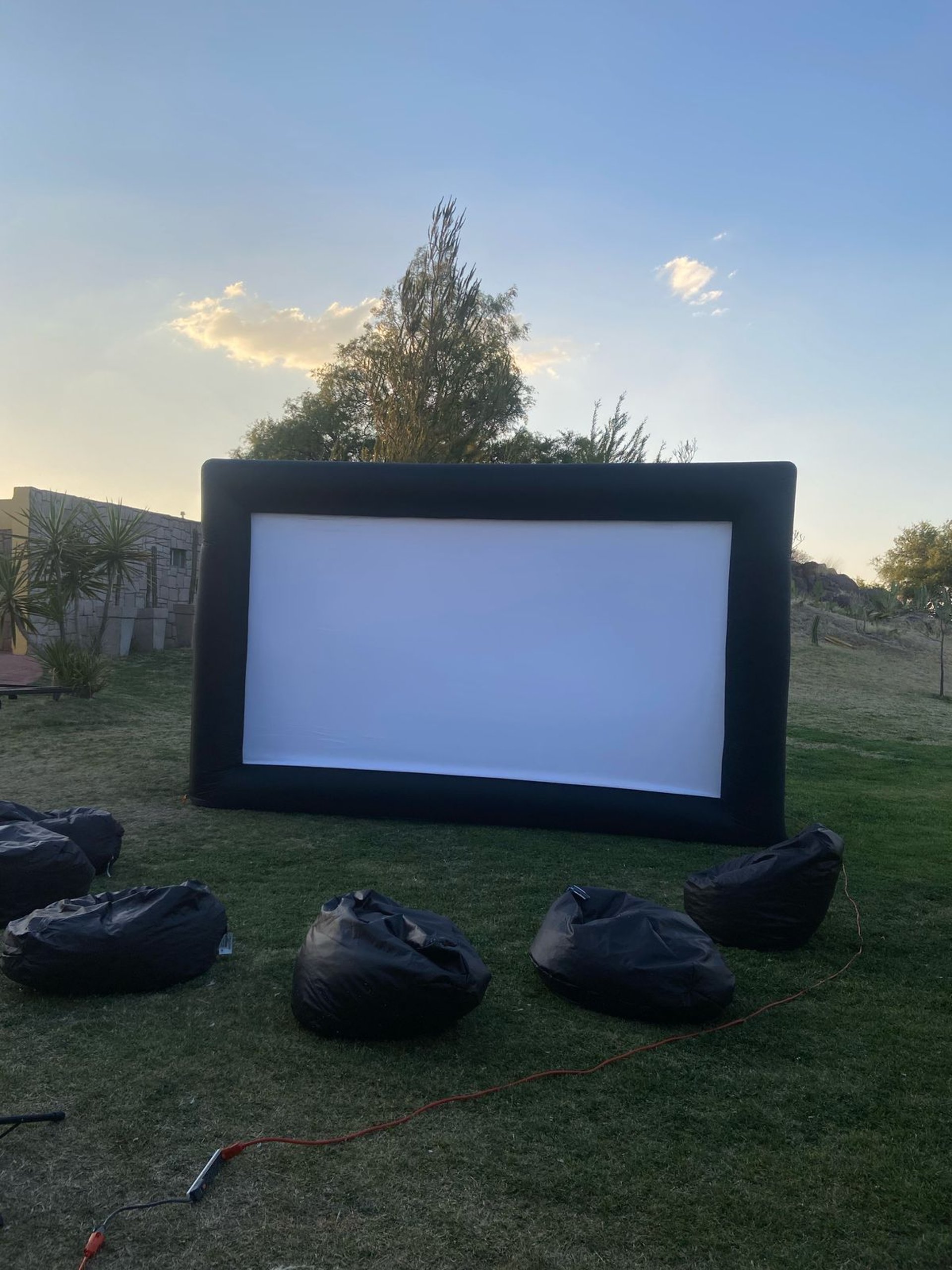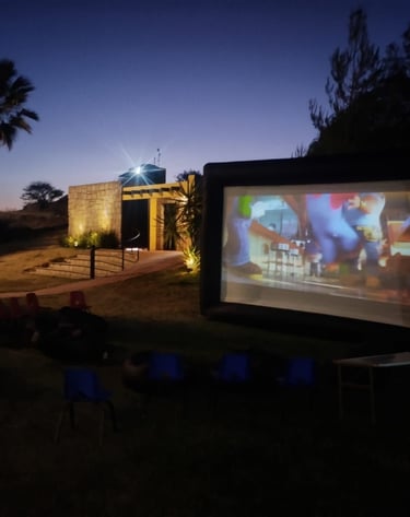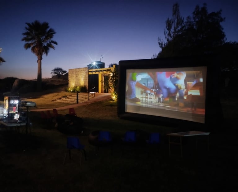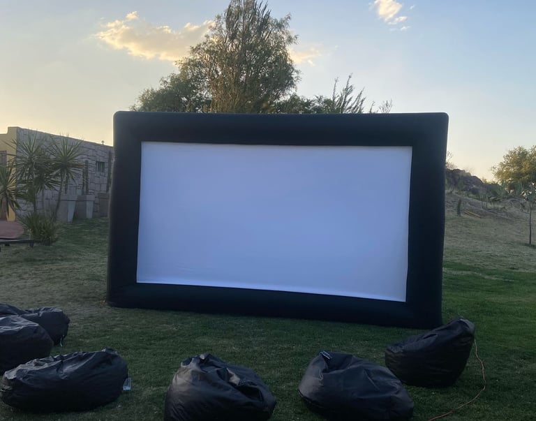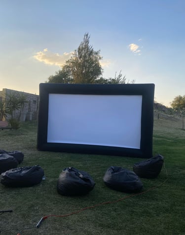"🍿 ¡Luces, cámara y... mucha diversión! 🎬 ¿Quieres una fiesta diferente? Te armamos un cine gigante en tu patio o salón. Incluye todo para que los niños se sientan en la premiere de su vida: pantalla inflable, sonido de alta fidelidad, puffs súper cómodos y, por supuesto, palomitas calientitas ilimitadas. ¡Es el plan perfecto para un cumple o una noche especial!"